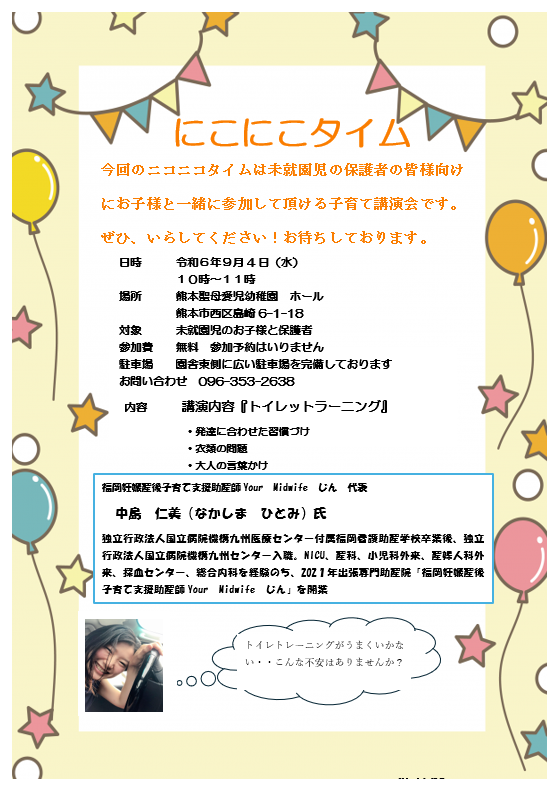 場所 熊本聖母愛児幼稚園 ホール (熊本市西区島崎6丁目1-18) 慈恵病院隣り