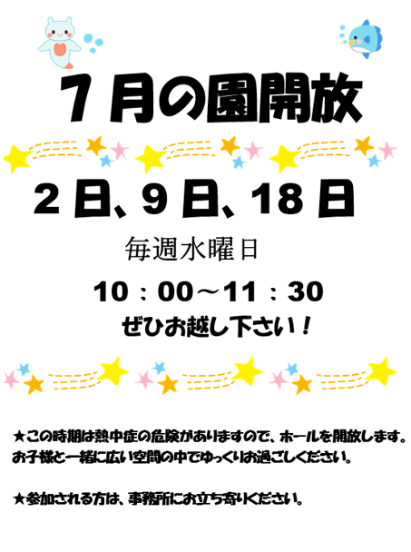 1)毎週月曜日・・体操教室(幼稚園ホール、太陽スポーツクラブ)